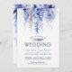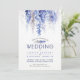 Flores do tipo vinha soltas e folhas em cascata de pintura de aquarela botânica e convites para casamento. Linda arte floral, design de arte aquática solta, ideal em tons de inverno de azul escuro e cinza de branco. Outros itens correspondentes e opções de cor disponíveis. © Original watercolor art e design por Sarah Trett www.sarahtrett.com para www.mylittleedenweddings.com