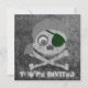 Cartões de convite de dois lados. O Front tem o personalizável "Você é Convidado". Voltar tem com informações de convite — introduza o seu título, data, hora, localização e informações adicionais ou mensagem pessoal. Crânio de Cinza e ossos cruzados com olho verde escuro e bandana de cinza. Olho no soquete esquerdo. Design está aflita.