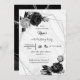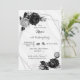 Flores de cinza pretas e prateadas elegantes em um quadro geométrico no convite de aniversário de fundo da cinza branca e prateada Os detalhes da brilha são simulados