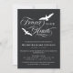 Elegante convite para o funeral de cinzas escuras sem fotos com pássaros em chamas, enquadrando Forever em nossos Corações em lindas fontes brancas irregulares.
