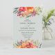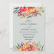 O elegante e rústico design apresenta uma coroa de lindas flores acrílicas pintadas em cor-de-rosa-pincel e amarelo, com pop de folhas e folhagem roxas e verdes coloridas. Placa inversa em uma cinza escura totalmente personalizável. Este convite é perfeito para um casamento elegante rústico, ou celebração de verão ou primavera