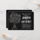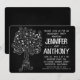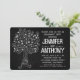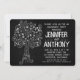 convite preto e branco moderno da festa de noivado da árvore de amor do quadro com coração cinzelado e suas iniciais.