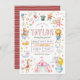 Suba! Celebre seu dia especial em estilo com esse convite de aniversário de circo fofo. A frente desta placa apresenta um quadro de animais desenhados à mão, um gato saltando através de um aro, um cavalo malabarista, um elefante balanceando em uma bola, um leão em um uniciclo, um mágico da raposa, um rato fazendo acrobacia, e muito mais! Dentro no quadro, o nome da criança é escrito em letras grandes com os detalhes do evento em um layout estilo de tíquete. Cartões invertidos a uma cor vermelha festiva com um padrão de listras desenhadas à mão branca. Uma design neutra em termos de gênero, perfeita para qualquer rapaz ou rapariga. Veja a coleção ligada nesta página ou visite a nossa loja para mais designs!