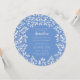 Moderno, elegante, chique, simples e na moda. Faça disso seu próprio personalização aqui no Zazzle e, ao fazer pedidos, você receberá convites para cartões planos sofisticados, de qualidade profissional, como mostrado na tela aqui e agora. Único e duro para encontrar especialmente projetado para convites de estoque de cartolina Circle. Folhas/galhos legantes dispostas em uma borda circular que envolve os detalhes da festa de formatura. Preencha os detalhes da sua própria festa de formatura fácil e rapidamente aqui online. Digite o texto de exemplo no link DETAILS da área PERSONALIZE. Clique em PERSONALIZAR se quiser mover reorganizar o texto/tipo. Um círculo de designer elegante e moderno convida criado por Pip Pip Hooray - 2020. Cornflower Blue com gráficos brancos e tipo.