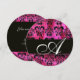 CONVITE CÍRCULO MONOGRAMA DE TECIDO DAMASCO PRETO FUCHSIA