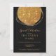 Um círculo abstrato de folha de ouro falso com linhas radiantes, para um estilo minimalista moderno. Sofisticado e glamoroso. Ideal para eventos noturnos formais. Casamentos, festas de aposentadoria, eventos corporativos, bailes, jantares especiais.