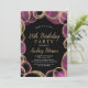Moderno Elegante Cor-de-rosa e Dourados Círculos de Tinta Luminosa Negra 18º Convite de Aniversário. Este convite de festas de Aniversário Adulto feminino de 18 (ou qualquer idade) apresenta um elegante roteiro de caligrafia com letras de mão e um quadro de Círculos de Tinta Rosa e Dourada com Álcool em fundo preto. Ideal para uma celebração de aniversário feminina de marco adulto, este convite captura perfeitamente a essência de uma festa de aniversário de ouro moderna e cinza rosa.