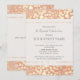Design elegante e moderno de padrão de círculo de folha dourada renderizado digitalmente em imagem digital de fundo de linho rosa pêssego. Uma fusão maravilhosa de festividade e elegância torna este um convite versátil - variando desde festas de 16 anos, formatura e festas de dança até casamentos e festas de despedida de solteira.