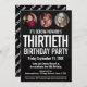 Convite para aniversário de 30 anos de modelo de foto simples, preto e branco, preto e branco, sem caráter visual. Personalize este convite de aniversário milestone com seus próprios detalhes de evento de festa de aniversário, e três fotos diferentes, uma de cada década do seu aniversariante ou garota nos círculos fotográficos. Outras cores de anos e itens correspondentes estão disponíveis. © Original design por Sarah Trett para www.mylittleeden.com no Zazzle.