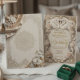 Convite Cisnes Barrocos de Ilusão em Seda e Folha Dourada