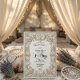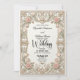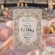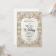 Defina o tom para uma união romântica com este design inspirado na era vitoriana, apresentando flores pastéis suaves e cisnes elegantes emoldurados por uma borda arquitetônica ornamentada. Este design apresenta um layout formal sofisticado ancorado por uma borda simétrica que simula a aparência de pedra esculpida em 3D. Folhas de acanto e filigranas em tons bege e creme criam uma moldura clássica em torno do texto central. No cabeçalho, dois cisnes brancos curvam seus pescoços para formar uma delicada forma de coração, aninhados entre rosas rosa suave, tulipas e folhagens verde-sage. A hierarquia tipográfica combina um elegante script de caligrafia preta para nomes com uma fonte serifada tradicional para detalhes do evento, garantindo alta legibilidade contra o fundo de creme limpo.