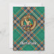 Crachá da crista Clan MacFarlane rodeado por uma correia e fivela sobre o antigo fundo de tartã de caça. Texto personalizado de ambos os lados.