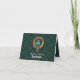 Clan MacKenzie crest badge surrounded by a strap and buckle over tartan background. Thank you card. Custom photograph. Custom text fields on both sides.