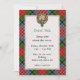 Crachá da crista Clan MacPherson cercado por uma correia e fivela sobre fundo tartano. Texto personalizado de ambos os lados.
