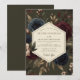 This design captures the dramatic elegance of a Dutch Master's still-life painting. Lush, painterly blossoms in deep claret and rich indigo emerge from a dark, moody background. Touches of ivory and muted foliage create a sophisticated chiaroscuro effect, perfect for an opulent and romantic union.