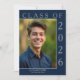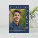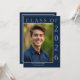 Um convite clássico, porém moderno, para a graduação, com a foto personalizada do seu formando. Apresentado em azul e branco marinho escuro com um toque de cinza clara, este simples anúncio é fácil de personalizar com seu próprio texto e foto. Basta clicar em "Personalizar este Modelo" para criar o convite de festas perfeito para honrar seu segundo grau ou formando universitário.
