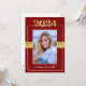 Este convite para a graduação da Maroon Red & gold Class de 2024 pode ser personalizado para convidar para iniciar exercícios e/ou uma festa de formatura em honra do formando. Isso funcionaria bem para formandos masculinos ou femininos. A frente apresenta um retrato do estudante graduado colocado com destaque na 'classe de 2024' acima da fotografia e o nome do formando abaixo. Há também uma fita falsa sobre o meio atrás da foto. O verso contém todas as informações necessárias para comparecer às festividades. Uma linha vermelha marrom e a "classe de 2024" estão na borda inferior. Este convite funcionaria bem para o segundo grau e graduação universitária.