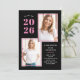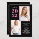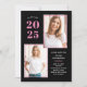 Esses convites de festas modernos e na moda apresentam três fotos do formando, além do ano de graduação de 2025 em negrito, cor-de-rosa sobre fundo preto escuro. Muitos sotaques cor-de-rosa adicionam um toque colorido à frente da placa.