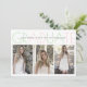 Classe de Formando verde-menta 2025 e listras cor-de-rosa pinceladas graduação moderna, simples e mínima colagem de fotos de festas com três convites para fotos. Apresenta o texto "Formando" em verde-menta e cor-de-rosa-claro e três fotografias. A parte de trás apresenta uma foto e um padrão diagonal listrado nas mesmas cores.