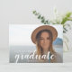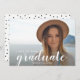 Comemore seu formando com este anúncio/convite de graduação apresentando sua foto, nome e classe de ano e um texto divertido de script que lê "formando" O backside apresenta os detalhes de seu partido enquadrados por um padrão de bolinhas - alterando facilmente a cor clicando em personalizar e deslizando para baixo até o selecionador de cores. Moderno e moderno, porém clássico e simples - o anúncio/convite perfeito para celebrar suas conquistas de formando.