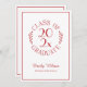 Envie convites para a formatura elegantes para a celebração do seu formando, com um símbolo vermelho-chic no símbolo da tipografia branca que diz: CLASSE DE [ANO] FORMANDO com as palavras curvando ao longo do ano no meio com folhas botânicas curvas ao longo de cada lado da design circular. Abaixo do emblema está o nome do formando em uma fonte vermelha de script e sua escola em uma fonte de serifa elegante. Um retângulo vermelho fino cria uma borda perto da borda. A parte traseira apresenta os detalhes da festa de formatura. Substitua o texto de exemplo no convite para seu formando e evento. Personalize-o para qualquer tipo de formando: segundo grau, faculdade, escola de formandos, faculdade de direito, escola de medicina ou escola de comércio. Copyright ©Claire E. Skinner. Todos os direitos reservados.
