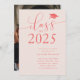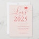 Modelo de convite para festas de formatura elegante e simples para formandos de segundo grau ou faculdade! O texto da tipografia contra o fundo cor-de-rosa diz "Classe 2025" na letra moderna da escrita. Personalize este produto adicionando o nome do formando, a escola e as informações da parte.