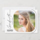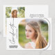 Este convite de festa de formatura de script moderno apresenta texto de estilo de escrita manual e uma fotografia quadrada com cantos arredondados. A parte de trás oferece uma segunda foto vertical e texto personalizado para que você adicione os detalhes do seu convite de festas.