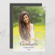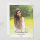 Cartão de convite à Festa de formatura de 2025, com uma fotografia moderna e um design de tipografia de script elegante. Com cinzas e caracteres personalizáveis brancos, você pode adicionar seu nome e data. Você também a foto com sua própria imagem. Excelente para celebrar aquele formando especial.
