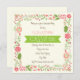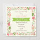 Classe de convite para festa de formatura floral, cor-de-rosa e coral, 2021, com ilustração de uma fronteira floral feita de flores brancas bonito em tons de rosa e coral, folhas verdes, faixa verde sobre fundo marfim. Texto em castanho e coral. Esse design bonito, moderno, elegante e na moda é completamente personalizável e perfeito para uma festa de formatura para as meninas.
