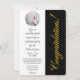 Celebre a sua ocasião importante com elegância e estilo! Nosso convite preto e branco eterno captura maravilhosamente a alegria de sua conquista. Com um boné de formatura no topo e um elegante "Parabéns" ao lado na caligrafia, esta sofisticada placa oferece um design único e alterno que acrescenta uma reviravolta moderna e nova. É a maneira perfeita de espalhar as boas notícias e convidar seus amigos e família para celebrar seu novo começo. Torne o seu evento especial inesquecível com este convite impressionante que reflete o entusiasmo e o significado do seu marco. Não perca a vida. Receba seus convites hoje!