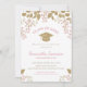 Convite Classe De Graduação Floral Dourada Elegante Rosa D