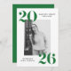 Convide os convidados para a sua festa de formatura com os nossos convites para festas de formatura do Bold 2025. A festa de formatura na moda convida a exibir a foto do formando em branco, com 2025 em letras verdes em negrito nos cantos superior esquerdo e inferior direito. Personalize a frente dos convites para festa de formatura de fotos adicionando o nome do formando e o nome da escola. O convite reverte para exibir os detalhes do seu partido em letras brancas contra um fundo verde sólido.