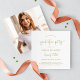 Esta classe minimalista, falsa de ouro e branco de convite para festas de formatura de 2025 apresenta uma tipografia moderna de escrita manual e um layout simples e na moda. Uma foto do formando vai para trás.