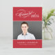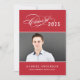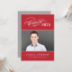 Anuncie seu segundo grau ou formando universitário em estilo com este elegante anúncio de graduação de script e convite de festas. A placa dupla possui duas fotos do formando, texto branco personalizado e acentos de script caligráfico. As cores de fundo vermelho e cinza podem ser modificadas para coordenar com as cores da foto ou da escola.