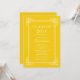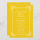 Convite moderno clássico bonito da festa de formatura, anúncio da graduação caracterizando um grupo branco extravagante do quadro em um fundo do ouro amarelo para um olhar formal e elegante. Convite perfeito do formando para uma graduação graduada do formando ou do menino da menina do segundo grau ou da faculdade. Disponível em nossa loja em uma grande variedade de cores populares da escola. As ordens feitas sob encomenda da cor são dadas boas-vindas sempre.