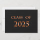 Placa classe 2025 com textura preta para fundo e laranja para o nome. A parte de trás é uma textura preta com letras laranja para os convites de festa de formatura.