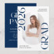 Convide a família e os amigos a celebrarem o formando com estes convites para festas de formatura de na moda! O design de tendência apresenta "Classe de Formando 2025" em letras de marinho em negrito com acentos sutis de script com um fundo branco sólido. A foto vertical do formando é exibida em dentro e oblonga no centro do convite. Personalize a frente do convite para a graduação do marinho com o nome do formando e a escola. O convite reverte para exibir seus detalhes de festa de formatura em branco com um fundo de marinho. Este convite para formandos é perfeito para formandos de segundos graus e faculdades.