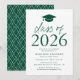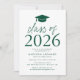 Convide convidados para comemorar o formando com nossos convites para a festa de formatura de 2025. Os convites apresentam um boné de formatura no topo com "Classe de 2025", exibido em caracteres verdes modernos. Personalize os convites adicionando o nome do formando, a escola e os detalhes da festa de formatura. A festa de formatura da moda convida ao contrário para mostrar um padrão verde e branco de girino.