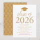 Convide convidados para comemorar o formando com nossos convites para a festa de formatura de 2025. Os convites apresentam um boné de formatura no topo com "Classe de 2025", exibido em letras douradas modernas. Personalize os convites adicionando o nome do formando, a escola e os detalhes da festa de formatura. A festa de formatura de tendências convida ao contrário para exibir um padrão de trellis em ouro e branco.