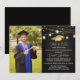 Convites para a Celebração Moderna com fundo na moda preto, uma foto do formando, luzes e texto de caligrafia dourado que é fácil de personalizar. Perfeito para uma festa no quintal. Parte de uma coleção. Itens correspondentes disponíveis.