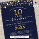 Convite de reunião de classe moderno e elegante para qualquer reunião de ano (mostrada para 10 anos) com estrelas e luzes douradas, tipografia elegante de script manuscrito e um fundo de cores personalizado (mostrado em azul marinho) você pode mudar para a cor da sua escola ou para a cor do tema da festa. Todo texto é editável para fazer o seu. ASSISTÊNCIA: para obter ajuda sobre modificação ou personalização do design, alteração de cor, redimensionamento, transferência do design para outro produto ou você gostaria de coordenar itens, entre em contato com o designer ANTES DE ENCOMENDAR através da guia MENSAGEM de bate-papo Zazzle abaixo ou envie um email para makeitaboutyoustore@gmail.com.