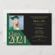 Anúncio de graduação e convite da classe verde e Dourada de 2024 em preto com destaque para a cor da escola moderna e na moda em verde. Design verde verde verde e ousado a cores editáveis e 2024 em ouro sobre fundo preto com cubo de foto de quadro quadrado no verso com espaço para 4 fotos a cores de cheio adicionais.