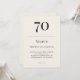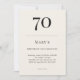 Classic black and soft ivory minimalist birthday invitation with elegant typography for a 70th celebration. Name age date time location and RSVP are fully customizable to suit formal or black tie adult events.