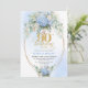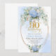 Convite Classic Blue Floral Gold Greenery 90th Birthday