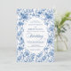 Make a refined first impression with this wedding invitation featuring classic French toile de jouy roses in elegant shades of navy blue, royal blue, dusty blue, and deep blue. Inspired by timeless European floral design, this invitation blends traditional sophistication with modern elegance, perfect for a classic, romantic, or formal wedding celebration.