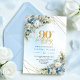 Convite Classic Boho Dusty Blue White Floral 90th Birthday