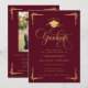 Convite Classic Burgundy Gold Photo Graduation