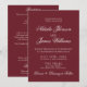 This wedding invitation is perfect for your wedding if you are looking for an elegant unique and easy double sided editable invitation .An elegant unique luxurious burgundy red and white all in one wedding template invitation. as you see it features burgundy dep red background. And classy chic font in white old money bright bride's and groom's first names and script info.With whole wedding details on the back as reception, hotel RSVP and wedding website. It is Affordable and it is also digital electronic e-invitation if you want to send it by text or email. All the info are customizable by clicking on the personalize button. So Grab it and make it yours so you make you invites engaged and excited .