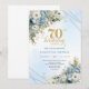Celebrate a milestone in style with this elegant 70th birthday invitation featuring watercolor dusty blue and white flowers, soft eucalyptus greenery, and a shimmering gold frame. Designed in chic boho style with refined script lettering, this floral invitation is perfect for a classy 70th birthday party. Ideal for formal, garden, or luxury celebrations with a timeless, sophisticated touch.