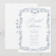 Convite Classic Elegant Blue Floral Frame Bridal Shower